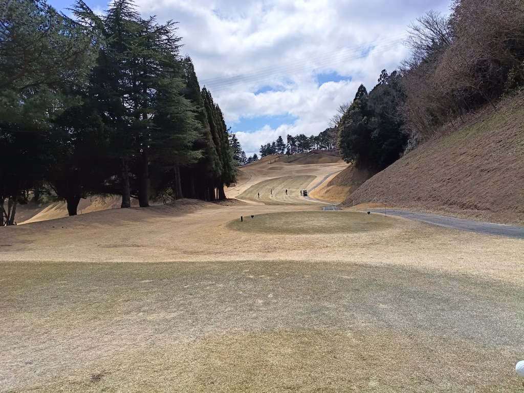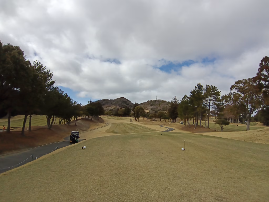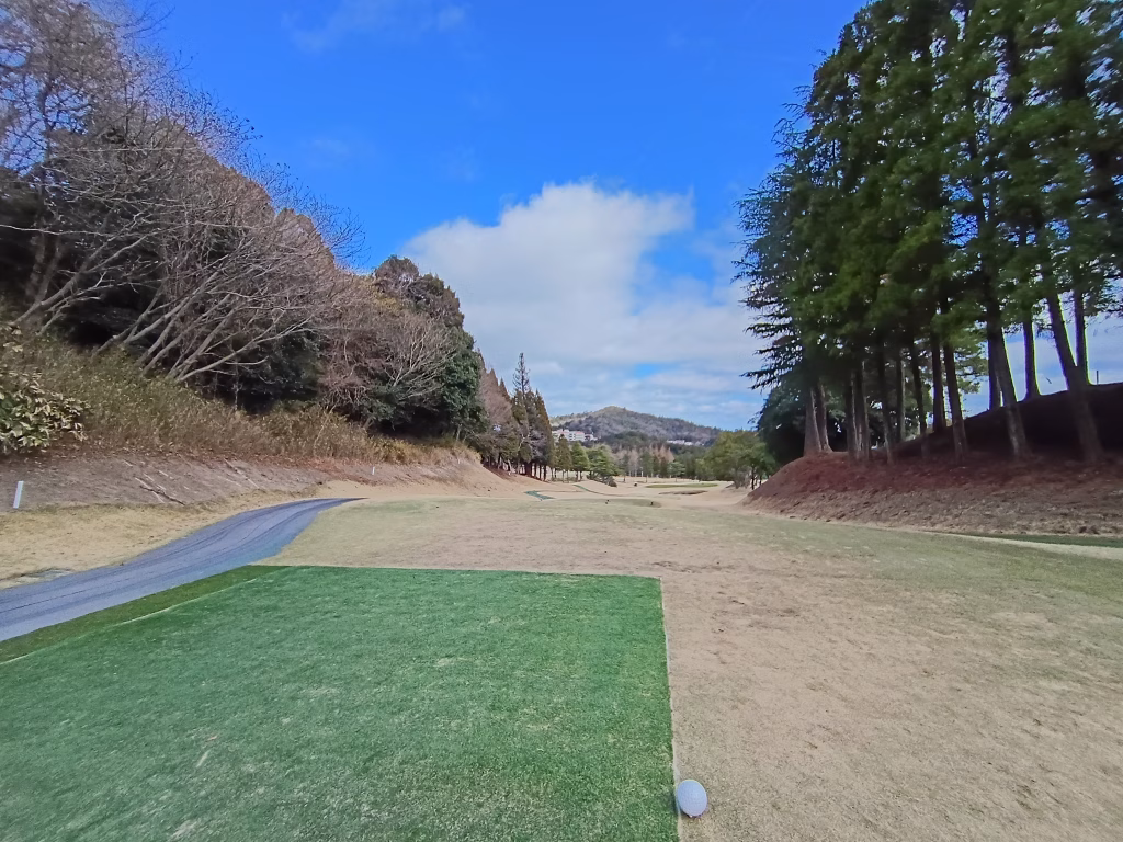 ティーイングエリア左側にティーが切ってあり、右OBを警戒しながら左を狙ったのですが、狙いより左に打ち出してしまい50ヤード先の木に直撃。